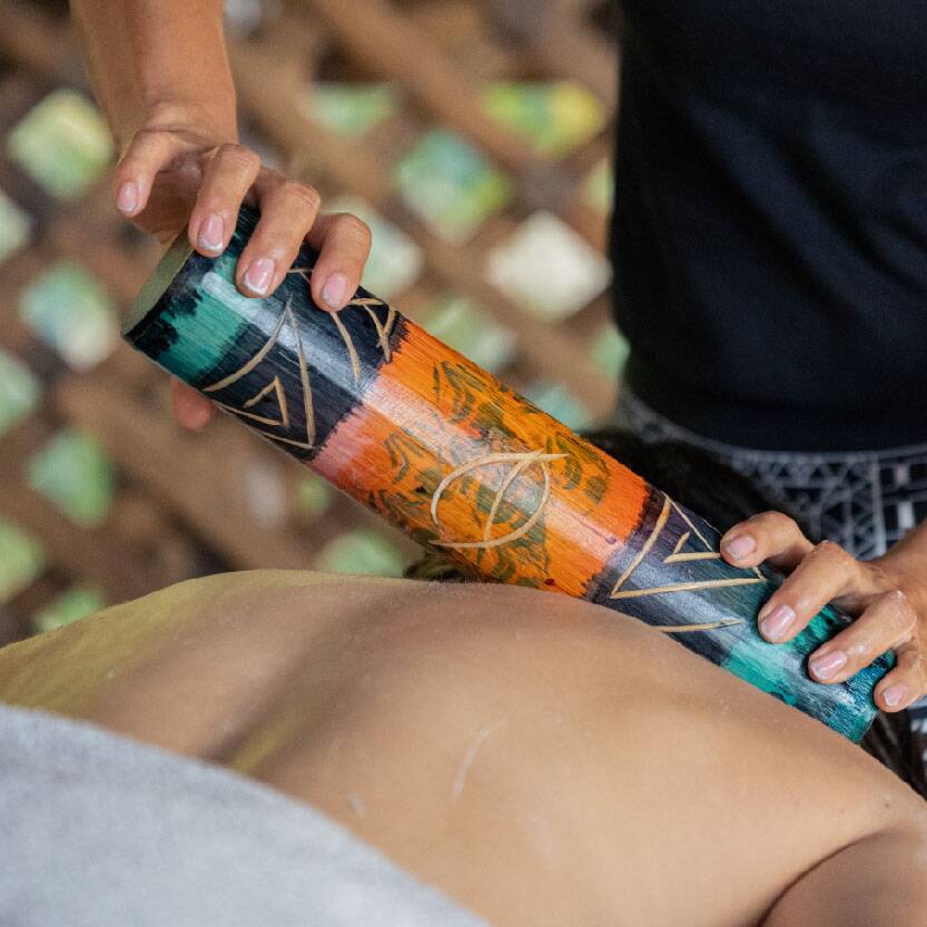 Masaje africano con cañas de bambú